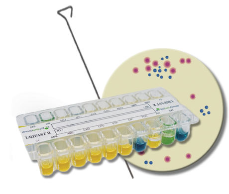 Urinary tract infections are the second most important reason for consulting a family practice doctor after respiratory infections. In hospitals, urinary tract infections are the most frequent source of nosocomial infections and are difficult to treat and prevent. Most urinary tract infections are benign. However, infections may become pathological and result in complicated infections such as cystitis, chronic prostatitis, or even pyelonephritis. Diagnosis of urinary tract infections depends on a clinical and biological analysis. This includes the isolation of the germ responsible as well as the assessment of antibiotic susceptibility. The methods for determining minimum inhibitory concentrations (MIC) by diffusion in agar medium as well as by microdilution in liquid medium are lengthy and have proved unsuitable for routine diagnosis or emergency situations. The URIFAST® 2 kit has been designed to determine the susceptibility of Enterobacteriaceae to the most common antibiotics used in the treatment of bacterial urinary tract infections.